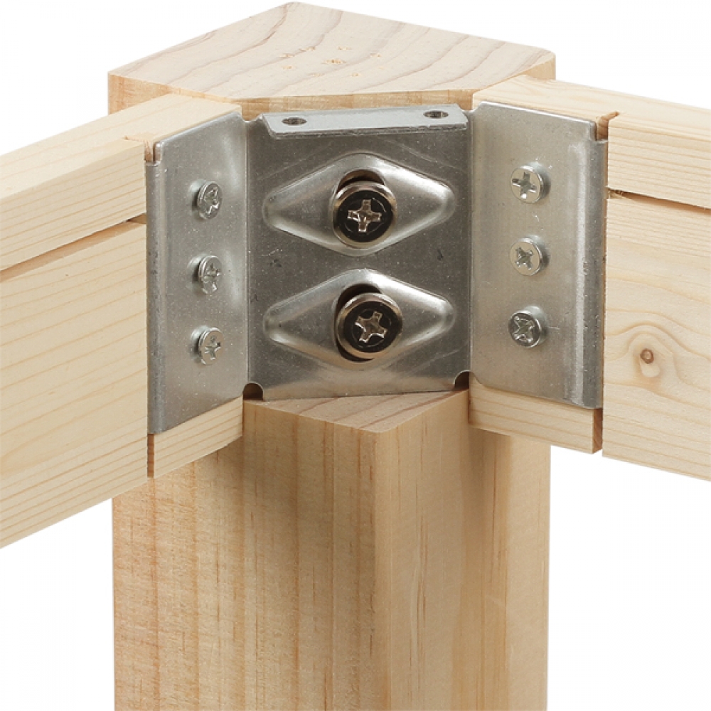 • 코너 브라켓 : 코너 브라켓은 테이블이나 프레임을 짜는 가구에 사용하는 브라켓이다. 보통 테이블의 프레임을 구성할 때 다리를 고정시키는 방법에 적용한다. 분리 결합이 가능한 형태로 되어 있어 초보자들이 잘 사용하면 원하는 테이블을 제작하는 데 편하게 작업할 수 있다. 다만 내구성은 약간 떨어지는 편이다.