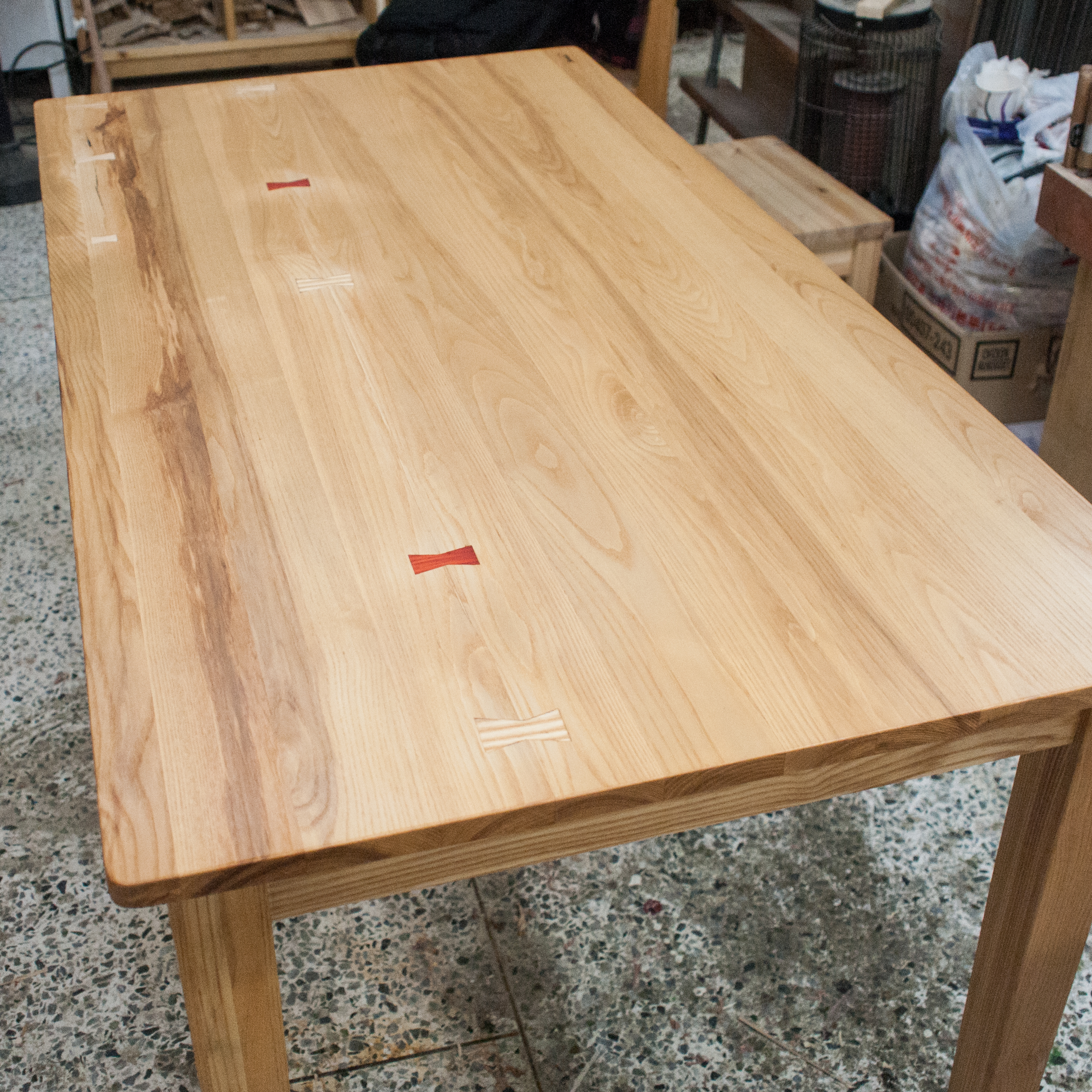 * 원목가구를 제작하기 위해 필요한 목재들을 구분해 둔 모습. 필요한 크기, 형태, 색, 무늬 등을 고려하여 제작하기 때문에 시간도 오래 걸리고 복잡하다.