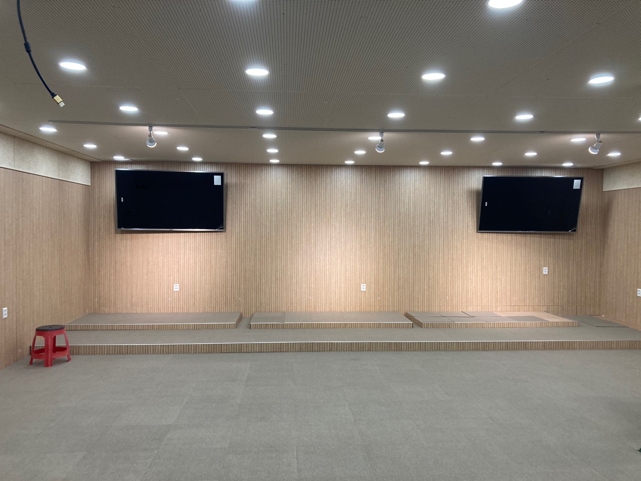 빈 공간에 공간을 만드는 작업. 작은 강당을 만드는 작업이었지만 생각보다 해야 할 일이 많았다. 공간을 만들기 위해 샌드위치 판넬로 구조를 만들어야 하고, 천장을 만들기 위해 트러스트를 짜야 했다. 강당의 특성상 시끄러운 소리를 줄이기 위해 방음처리와 흡음 작업을 해야했고 전체 분위기와 요구사항에 맞춰 자잔한 일들도 함께 진행되었다. 물론 이런 작업은 오히려 편한 부분도 있다. 비어있는 공간에서 작업해야 하는 것이기에 처음부터 기준과 과정만 잘 하면 마지막까지 편하다. 수직과 수평을 잡기 편하고 상황에 따라 변동 상황에 대응하기도 쉬운 편이다. 그렇기에 힘들기도 했지만 마지막 마감에서 후련한 마음이 더 드는 그런 작업이었던 것 같다.